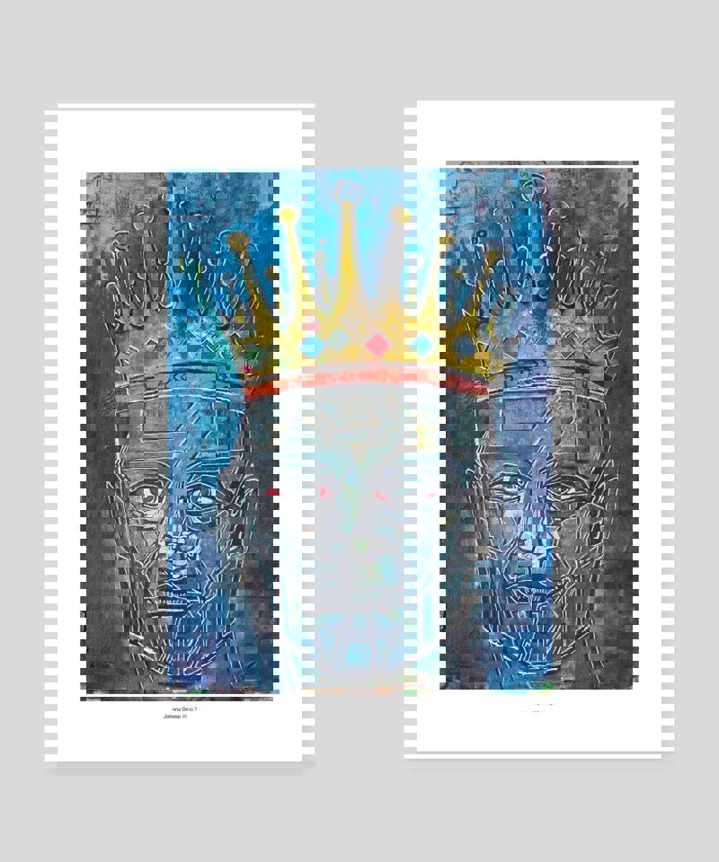 A mini print of the original artwork "King 7," created by Johnny as a tribute to Basquiat's work.