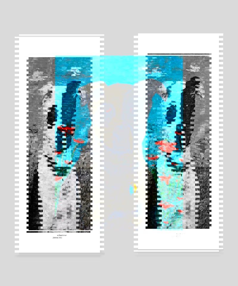 このプリントは、ジョニーの愛する家族の犬ムーを描いたものです。彼はピットブル・ボクサーテリアへの愛情を込め、大きな絵画にすることで永遠に残しました。